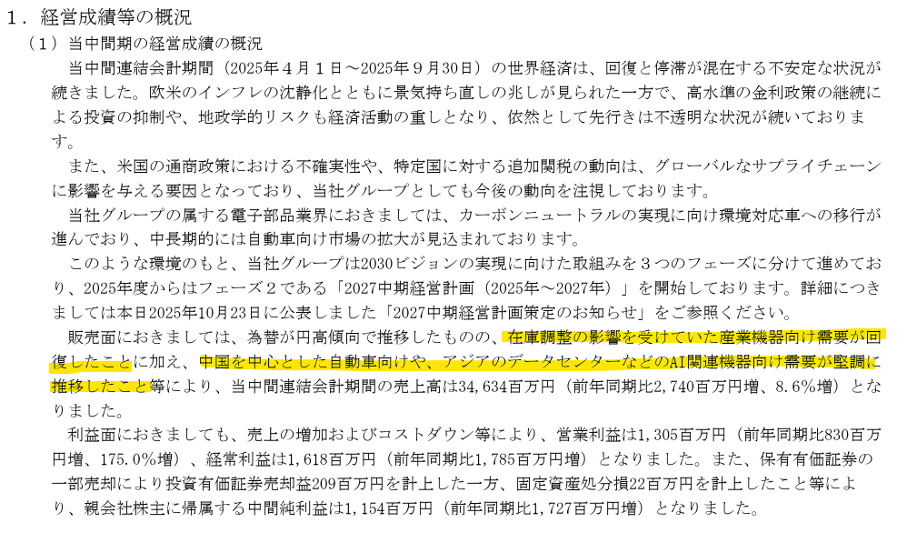 - 収益モデル:グローバルな製造・販売ネットワークを通じた電子部品の製品売上。
