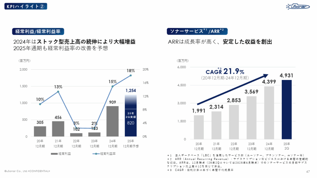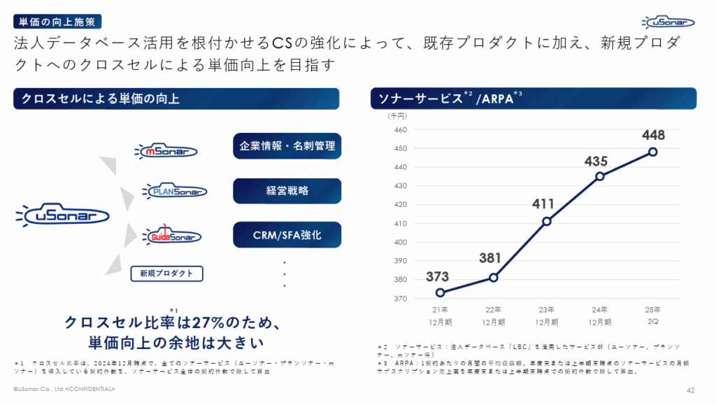 - 収益モデル: 顧客データ統合ソリューション「ユーソナー」を中心としたSaaS(ソナーサービス)の提供によるストック型収益