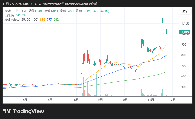 - LOIVE:買い。以前の決算で上期は利益ゼロで下期偏重とあったので、決算後下がったら買おうと思っていて、買ったはいいけどさらに下がって含み損。。