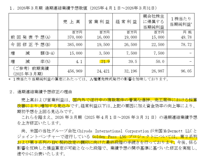 - 収益モデル: 主に長期のプラント建設請負契約(EPC)に基づき、工事の進捗度に応じて収益を認識する完成工事高およびO&MやDXサービスによる対価。
