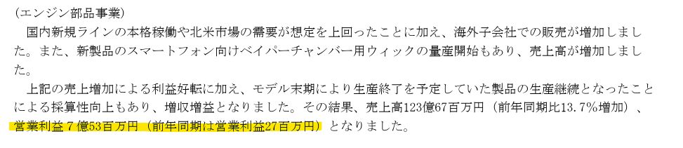 - 収益モデル:顧客が製品(エンジン部品、機械装置、環境機器)の支配を獲得する(引渡し時や検収完了時)時点での製品販売による売上収益。