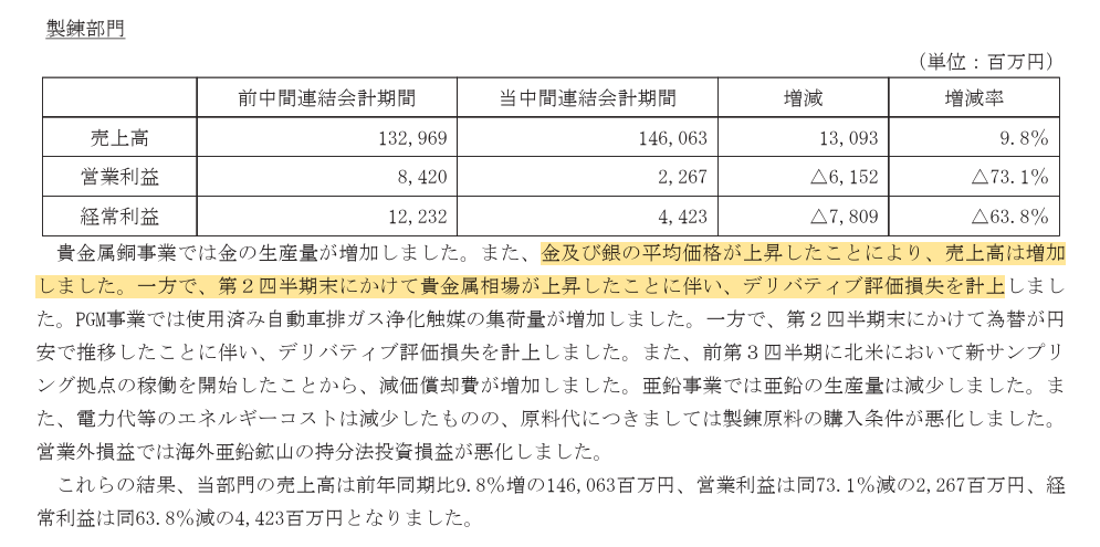 金や銀の価格上昇は売上にはポジティブで営業利益にはネガティブ?