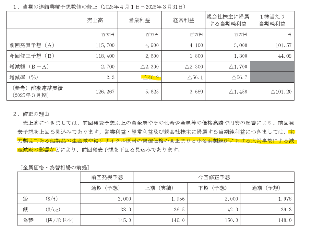 一方で通期の銀の前提が39.3ドル/オンスに対して、現在79.3ドル/オンスくらいになっている。