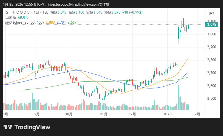 - トライアル:食料品の消費税2年間ゼロの話で盛り上がるかと思ったのと、グロース復活を祈願して買ったものの、買った瞬間含み損。