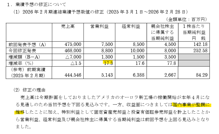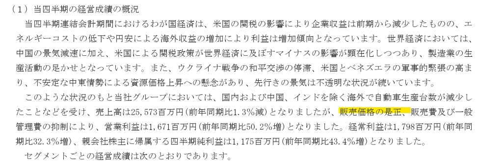 営業利益の伸びが良い。理由は販売価格の値上げと原材料価格の低下っぽい。
