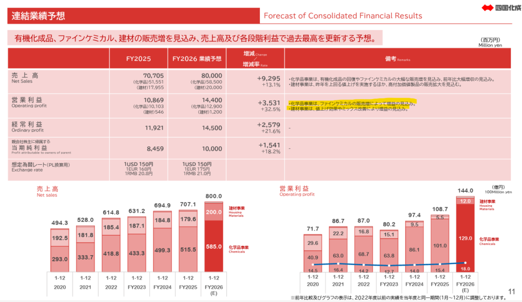 - 収益モデル:国内外の産業用途におけるニッチな高機能化学品の販売、および国内住宅・非住宅市場向けの建材製品の販売