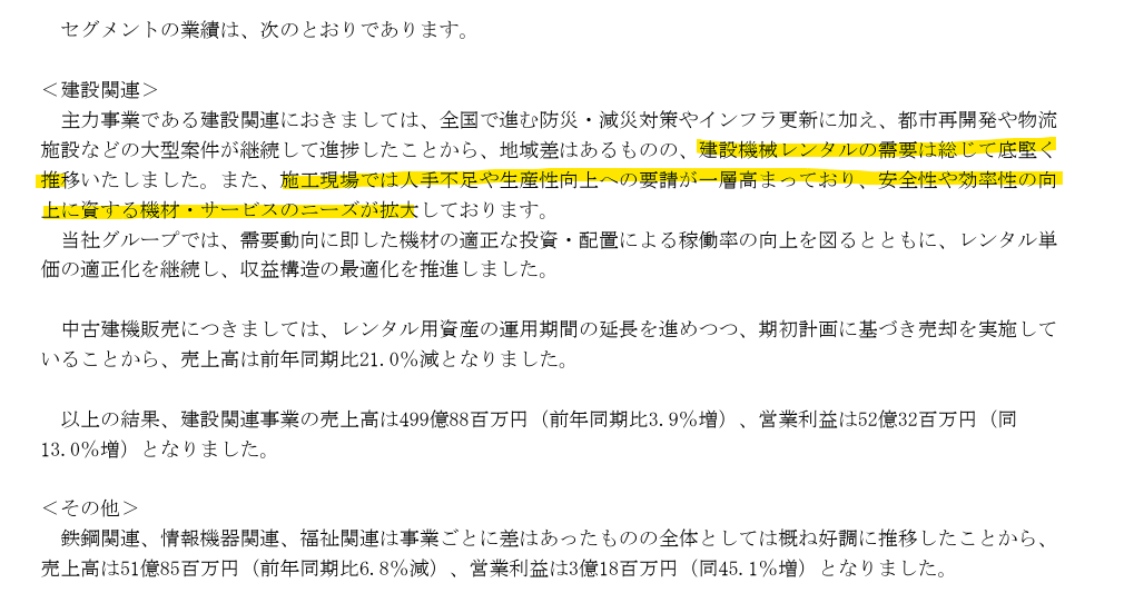 - 提供価値:多様な建設機械の適時提供やICT機器の活用による、顧客の設備投資負担の軽減および現場の生産性・安全性向上