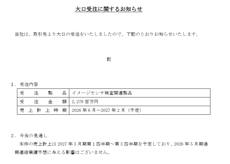 大口受注もあるそう