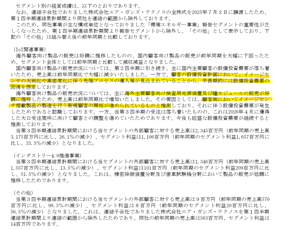 - 収益モデル:顧客の設備投資に連動する製品販売収益を基盤とした、消耗品、装置改造、SaaS型AIサービスによる継続的なストック収益