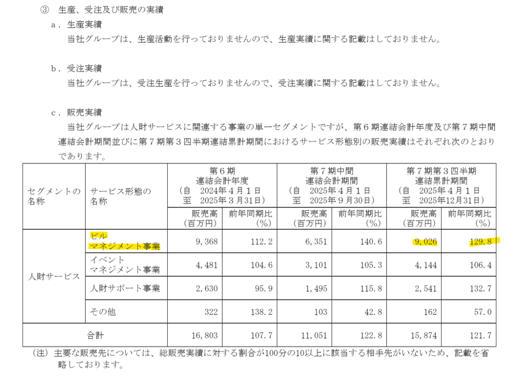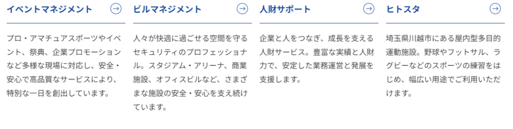 - 収益モデル:イベント運営・施設警備・店舗販売などの人財サービス提供に対する業務委託料および人材派遣対価の獲得